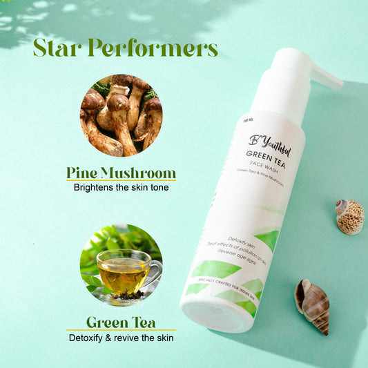 B'Youthful Green tea facewash & Scrub combo for skin revival ( 2 products )