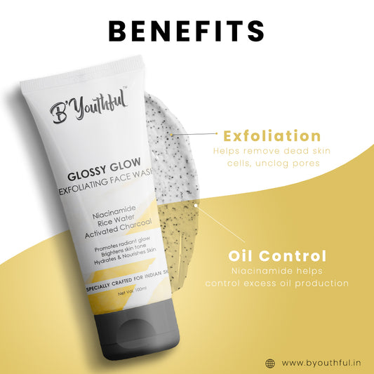 B'youthful Glossy glow exfoliating facewash with Rice water & Niacinamide for instant glow & Radiance - 100 ml