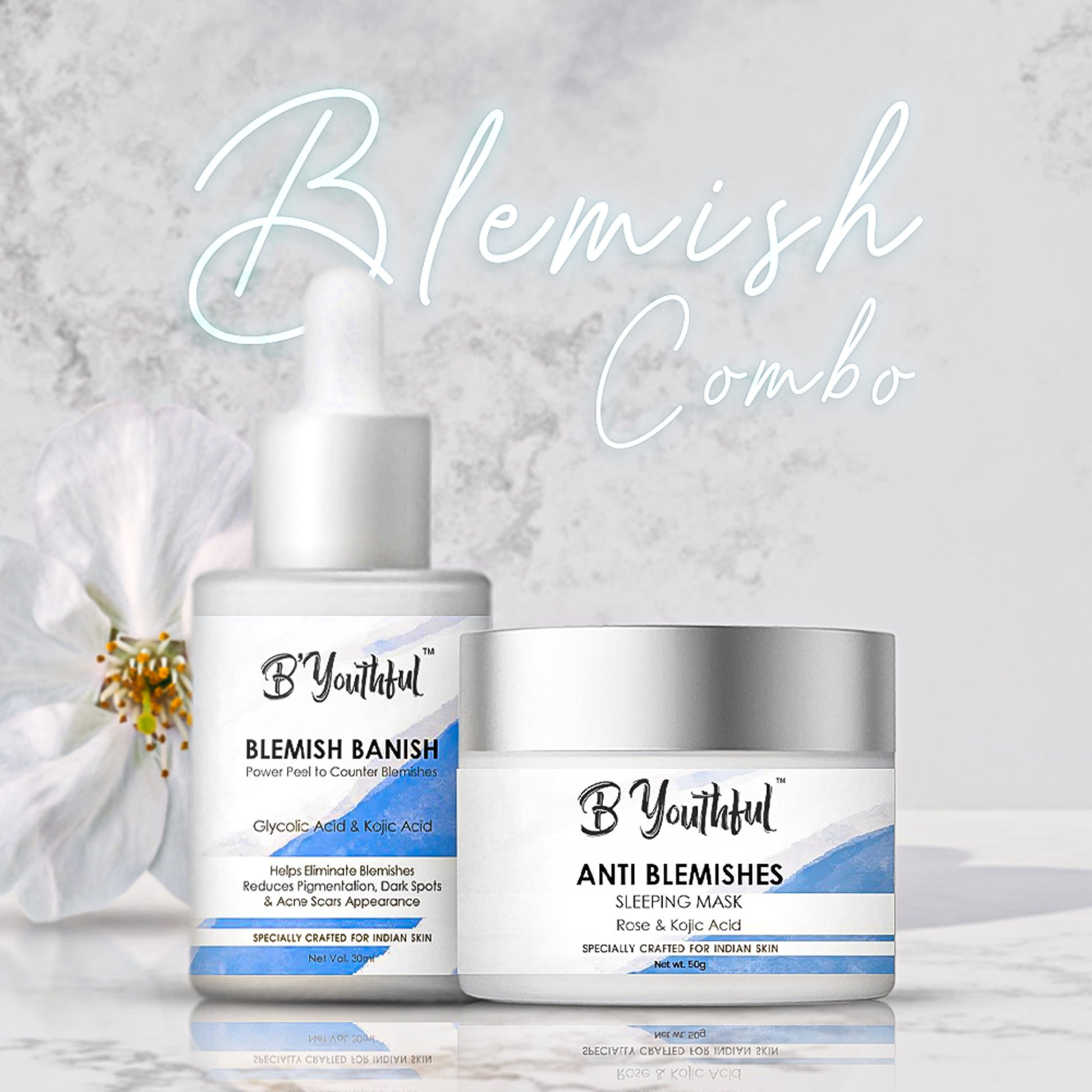 Blemish removal Kit with Kojic acid, Glycolic acid, Hyaluronic acid for clear & spot free skin