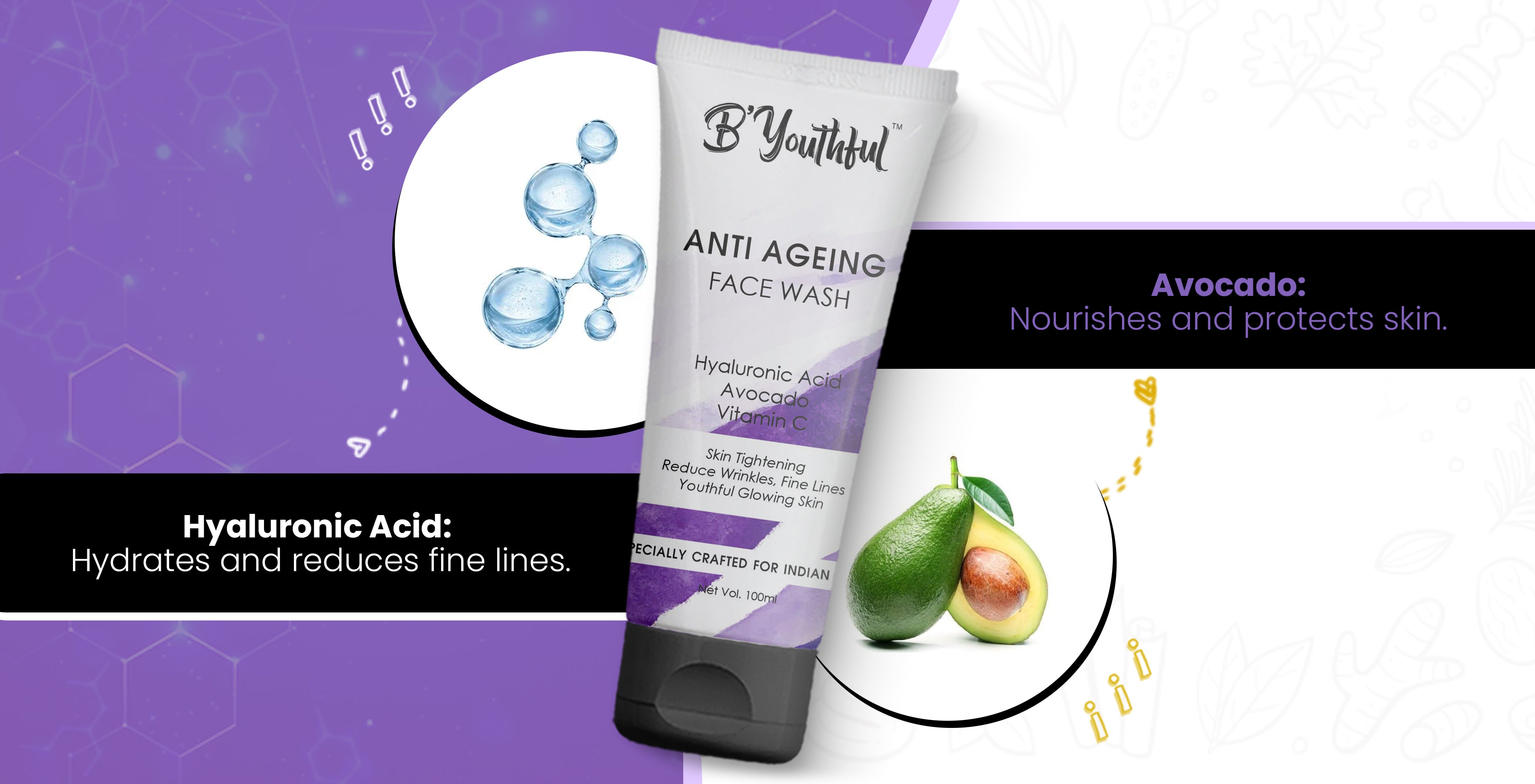 B'youthful Anti ageing facewash with Hyaluronic acid, Avocado & Vitamin C - 100 ml