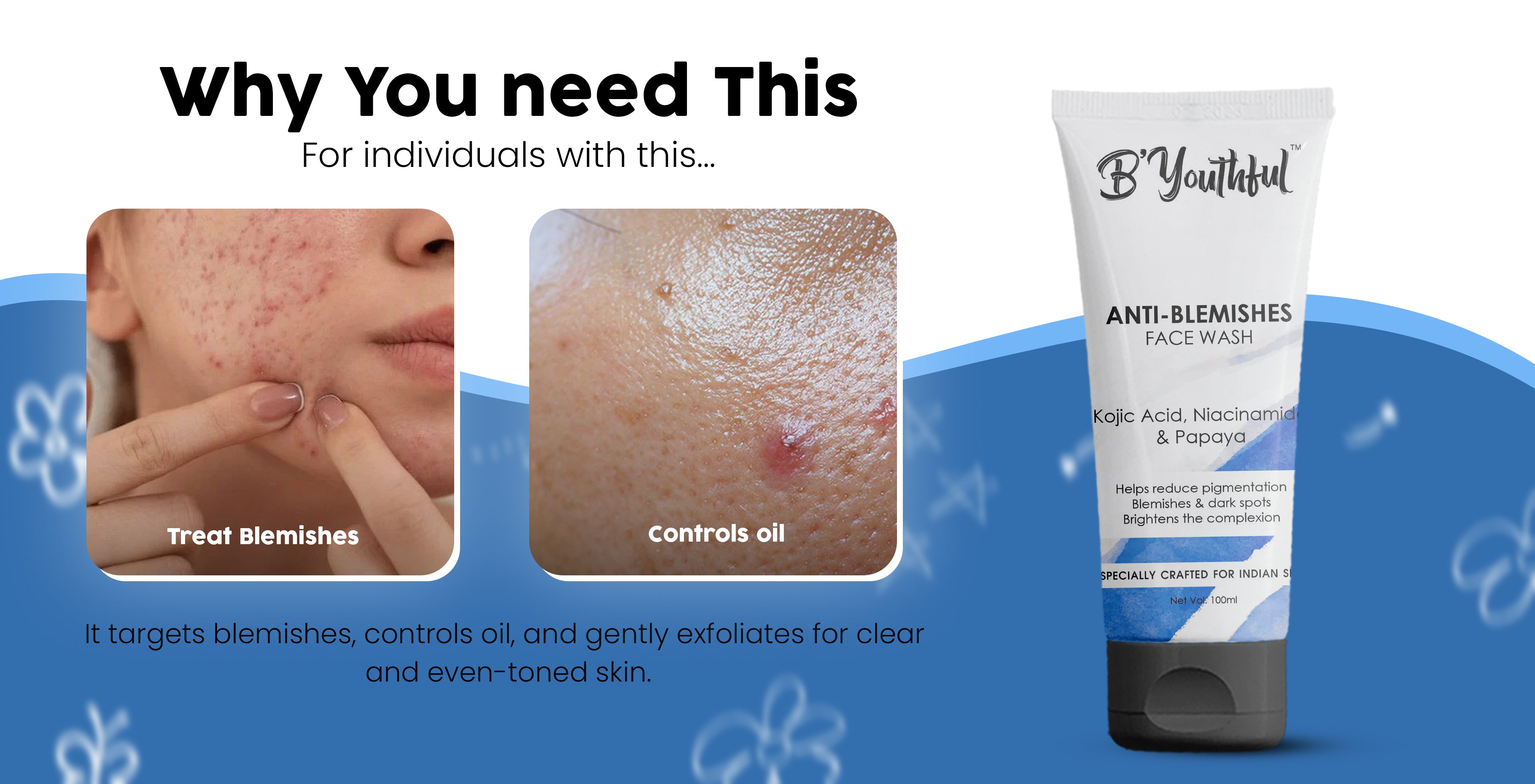 Introducing our Anti-Blemishes Facewash with Kojic Acid, Niacinamide, and Papaya. It targets blemishes, controls oil, and gently exfoliates for clear and even-toned skin. Suitable for all skin types. Get ready for a blemish-free, radiant complexion!