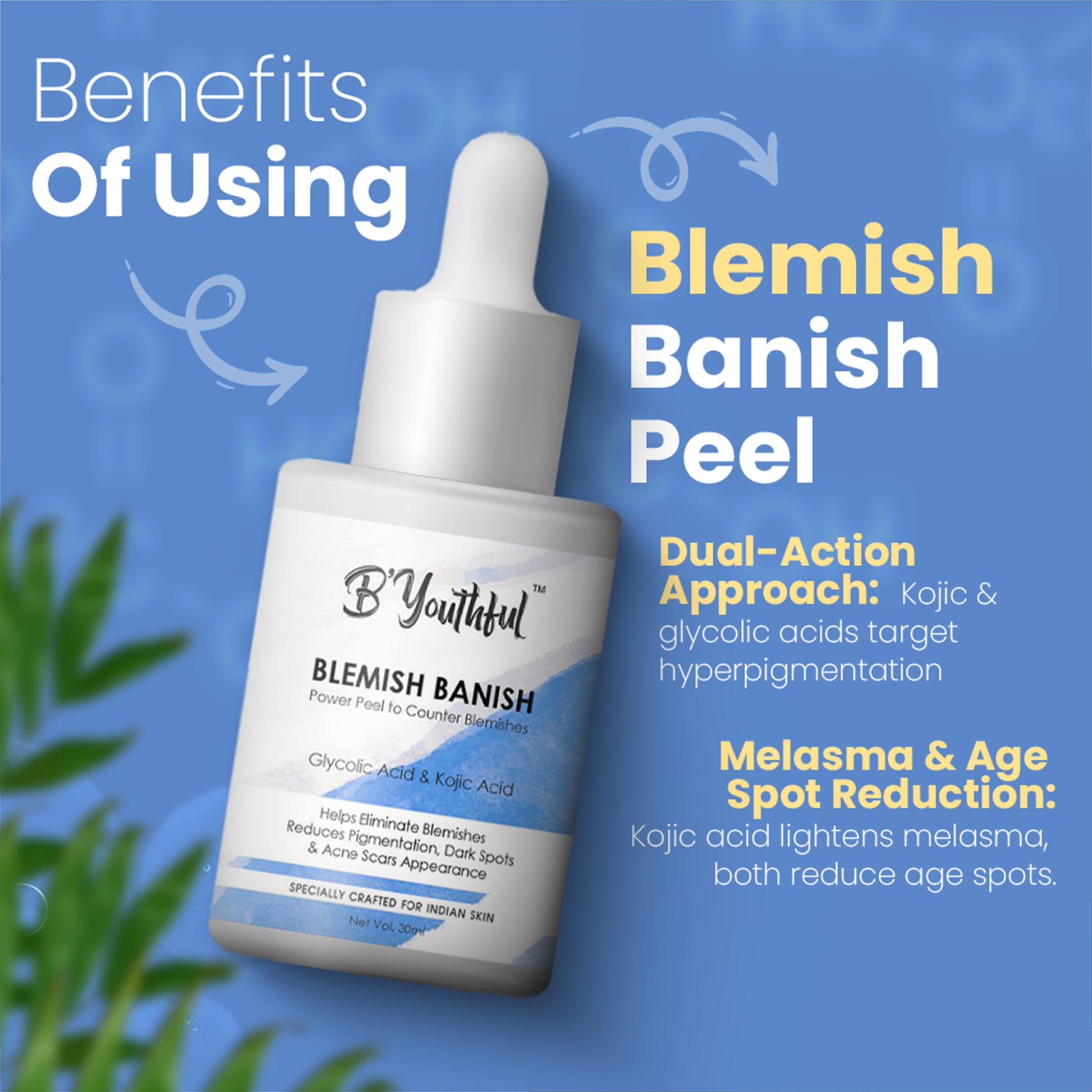 B'youthful Blemish Banish 10 min peel with Kojic & glycolic acid to remove blemishes, pigmentation & dark spots - 30 ml