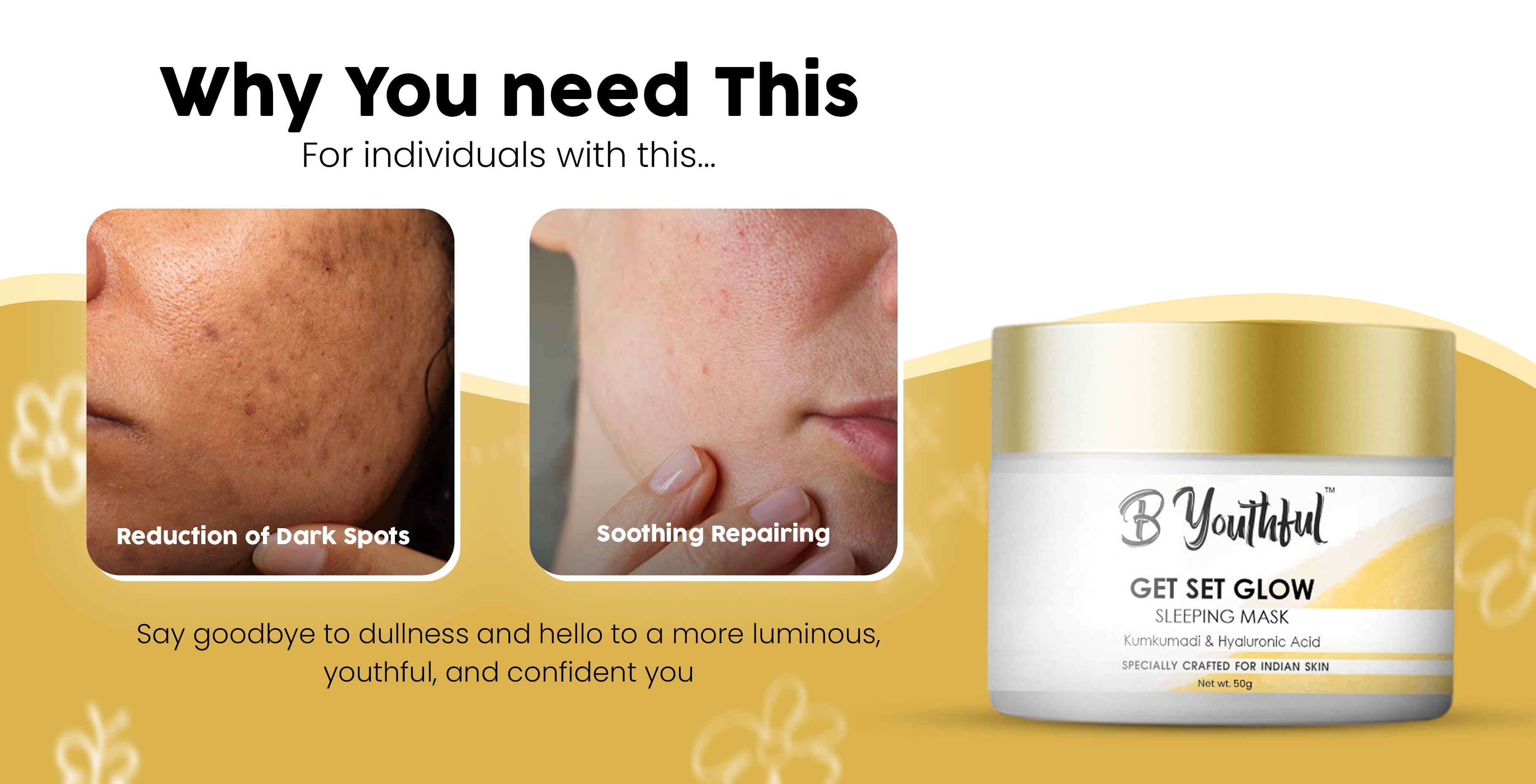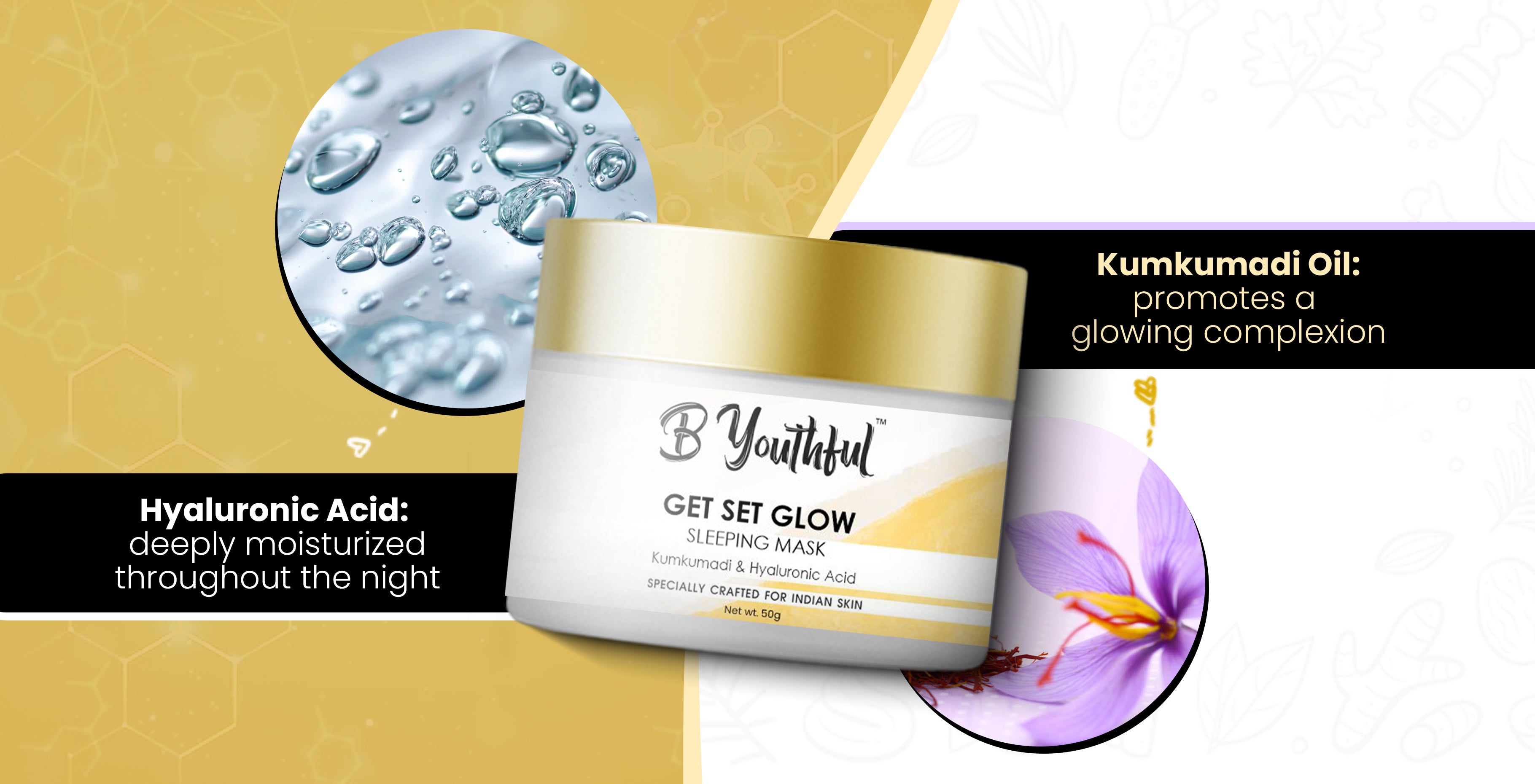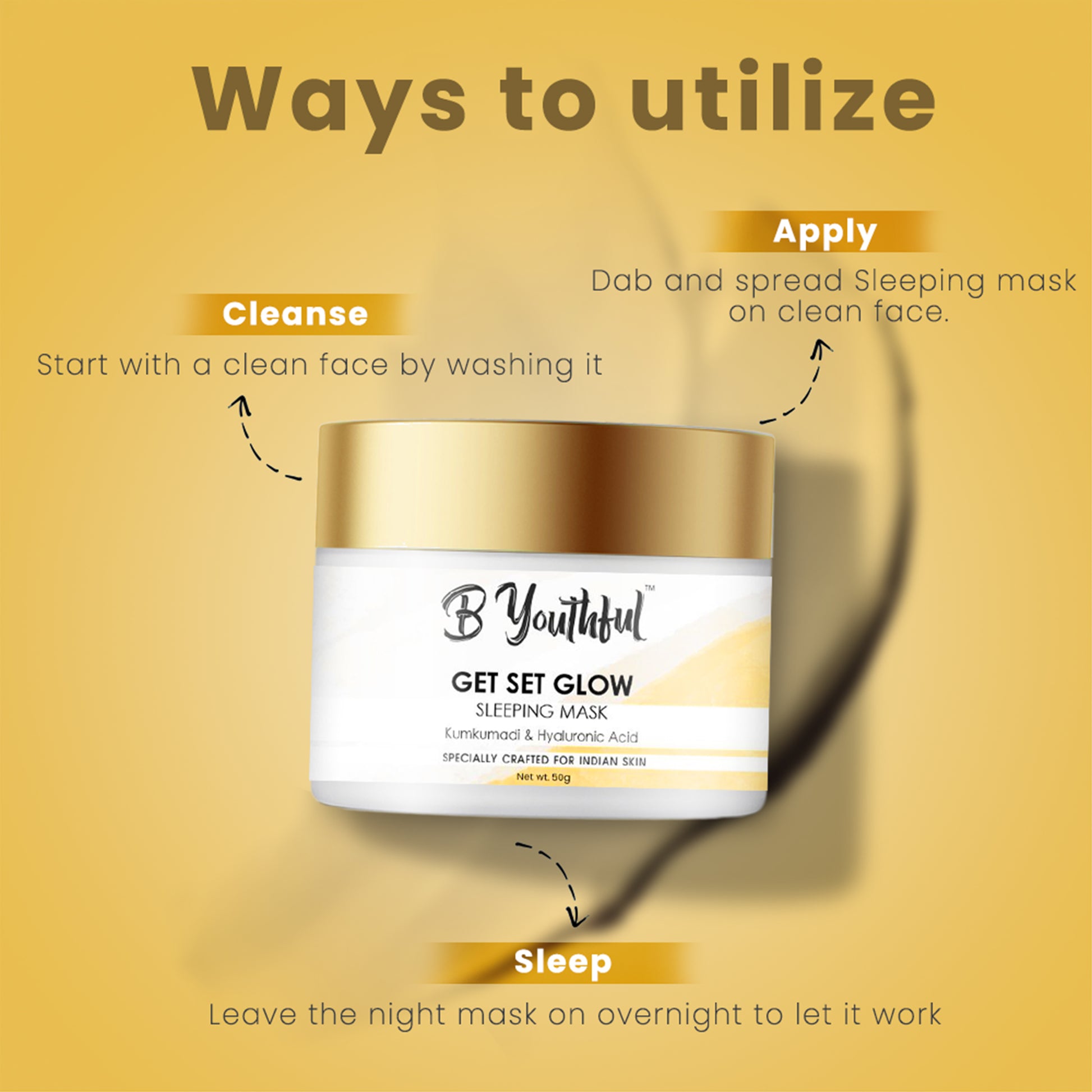 B'youthful Get Set Glow sleeping mask with Kumkumadi & Hyaluronic acid for glittering, glowing skin - 50 gm
